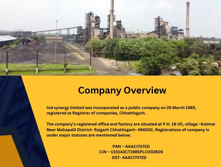 Ind Synergy Ltd is envisaging to setup an integrated Steel Plant in their existing plant premises, as a part of their strategic business plan, in an expansion.